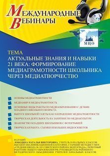 Международный вебинар «Актуальные знания и навыки 21 века: формирование медиаграмотности школьника через медиатворчество»