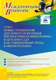 Международный вебинар «Новые технологии для нового поколения. Интерактивная инфографика в детском саду как современный тренд в мнемотехнике»
