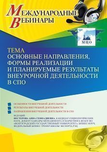 Международный вебинар «Основные направления, формы реализации и планируемые результаты внеурочной деятельности в СПО»