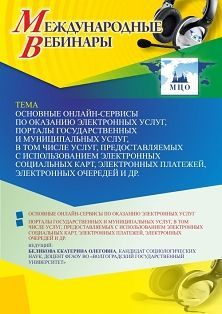 Международный вебинар «Основные онлайн-сервисы по оказанию электронных услуг, порталы государственных и муниципальных услуг, в том числе услуг, предоставляемых с использованием электронных социальных карт, электронных платежей, электронных очередей и др.»