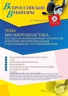 Вебинар «Биоэнергопластика как одна из инновационных технологий коррекции звукопроизношения у обучающихся с нарушениями речи»