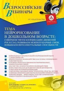 Вебинар «Нейрорисование в дошкольном возрасте: совершенствуем координацию движений рук и глаз, развиваем межполушарные связи, повышаем интеллектуальные способности»