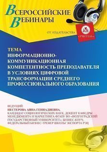 Вебинар «Информационно-коммуникационная компетентность преподавателя в условиях цифровой трансформации среднего профессионального образования»