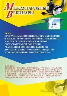 Международный вебинар «Программы дополнительного образования физкультурно-спортивной направленности в аспекте современных трендов образовательной политики: реализация Концепции развития дополнительного образования детей, утвержденной правительством РФ»