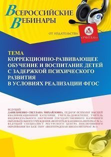 Вебинар «Коррекционно-развивающее обучение и воспитание детей с задержкой психического развития в условиях реализации ФГОС»