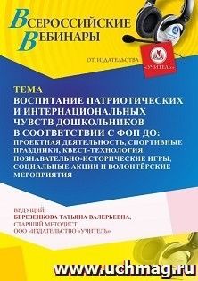 Вебинар «Воспитание патриотических и интернациональных чувств дошкольников в соответствии с ФОП ДО: проектная деятельность, квест-технология, спортивные праздники, познавательно-исторические игры, социальные акции и волонтёрские мероприятия»
