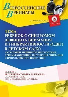 Вебинар «Ребенок с синдромом дефицита внимания и гиперактивности (СДВГ) в детском саду: актуальные принципы диагностики, приемы коррекции нарушения внимания и импульсивного поведения»