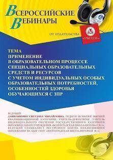 Вебинар «Применение в образовательном процессе специальных образовательных средств и ресурсов с учетом индивидуальных особых образовательных потребностей, особенностей здоровья обучающихся с ЗПР»