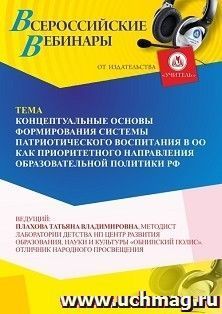 Вебинар «Концептуальные основы формирования системы патриотического воспитания в ОО как приоритетного направления образовательной политики РФ»