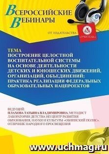 Вебинар «Построение целостной воспитательной системы на основе деятельности детских и юношеских движений, организаций, объединений: практика реализации федеральных образовательных нацпроектов»