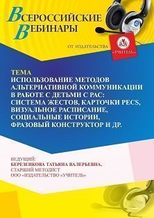 Вебинар «Использование методов альтернативной коммуникации в работе с детьми с РАС: система жестов, карточки PECS, визуальное расписание, социальные истории, фразовый конструктор»