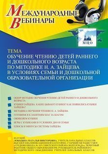 Международный вебинар «Обучение чтению детей раннего и дошкольного возраста по методике Н.А. Зайцева в условиях семьи и дошкольной образовательной организации»