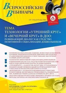 Вебинар «Технологии “Утренний круг” и “Вечерний круг” в ДОО: развивающий диалог как средство позитивной социализации дошкольников»