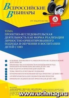 Вебинар «Проектно-исследовательская деятельность как форма реализации личностно-ориентированного подхода в обучении и воспитании детей с ОВЗ»