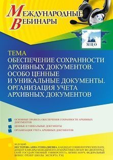 Международный вебинар «Обеспечение сохранности архивных документов. Особо ценные и уникальные документы. Организация учета архивных документов»