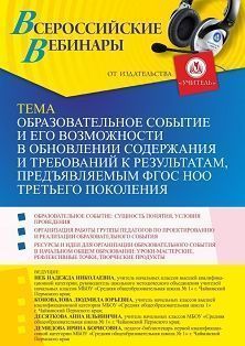 Вебинар «Образовательное событие и его возможности в обновлении содержания и требований к результатам, предъявляемым ФГОС НОО третьего поколения»
