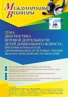 Международный вебинар «Диагностика игровой деятельности детей дошкольного возраста: критерии и показатели сформированности игровых умений, диагностический инструментарий»