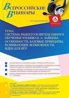 Вебинар «Система раннего и интенсивного обучения чтению Н. А. Зайцева: особенности, базовые принципы, развивающие возможности, идеи для игр»