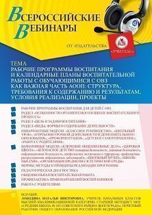 Вебинар «Рабочие программы воспитания и календарные планы воспитательной работы с обучающимися с ОВЗ как важная часть АООП: структура, требования к содержанию и результатам, условия реализации, проекты»