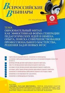 Вебинар «Образовательный митап как эффективная форма генерации педагогических идей и обмена опыта, поиска совершенствования профессионального мастерства, решения задач новых ФГОС»