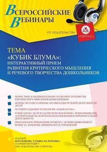 Вебинар «“Кубик Блума”: интерактивный прием развития критического мышления и речевого творчества дошкольников»