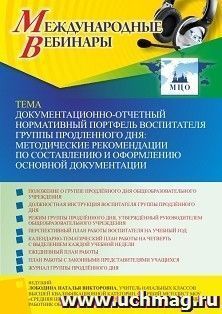 Международный вебинар «Документационно-отчетный нормативный портфель воспитателя группы продленного дня: методические рекомендации по составлению и оформлению основной документации»