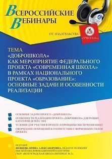 Вебинар «"Доброшкола" как мероприятие федерального проекта "Современная школа" в рамках национального проекта "Образование": основные задачи и особенности реализации»