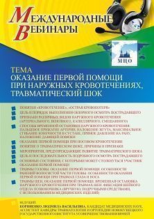 Международный вебинар «Оказание первой помощи при наружных кровотечениях, травматический шок»