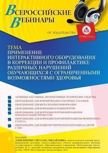 Вебинар «Применение интерактивного оборудования в коррекции и профилактике различных нарушений обучающихся с ограниченными возможностями здоровья»