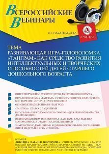 Вебинар «Развивающая игра-головоломка “Танграм” как средство развития интеллектуальных и творческих способностей детей старшего дошкольного возраста»