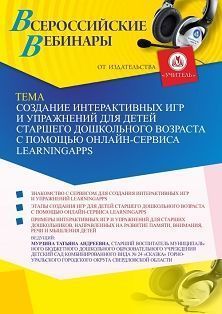 Вебинар «Создание интерактивных игр и упражнений для детей старшего дошкольного возраста с помощью онлайн-сервиса LearningApps»