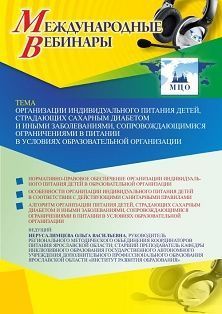 Международный вебинар «Организации индивидуального питания детей, страдающих сахарным диабетом и иными заболеваниями, сопровождающимися ограничениями в питании, в условиях образовательной организации»