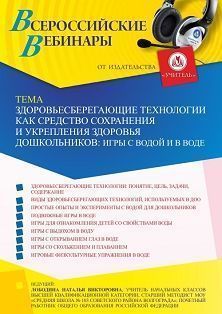 Вебинар «Здоровьесберегающие технологии как средство сохранения и укрепления здоровья дошкольников: игры с водой и в воде»