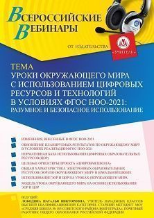Вебинар «Уроки окружающего мира с использованием цифровых ресурсов и технологий в условиях ФГОС НОО-2021: разумное и безопасное использование»
