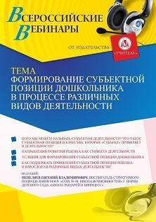 Вебинар «Формирование субъектной позиции дошкольника в процессе различных видов деятельности»