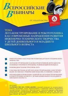 Вебинар «Лего-конструирование и робототехника как современные направления развития инженерно-технического творчества у детей дошкольного и младшего школьного возраста»