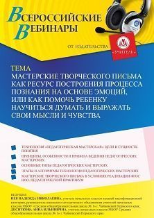 Вебинар «Мастерские творческого письма как ресурс построения процесса познания на основе эмоций, или Как помочь ребенку научиться думать и выражать свои мысли и чувства»