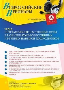 Вебинар «Интерактивные настольные игры в развитии коммуникативных и речевых навыков дошкольников»