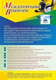 Международный вебинар «Организация проектной деятельности младших школьников в образовательной деятельности «Информатика» как основной педагогический потенциал реализации личностно ориентированной технологии обучения и создания среды программирования»