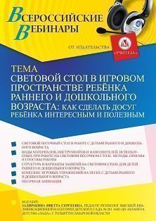 Вебинар «Световой стол в игровом пространстве ребёнка раннего и дошкольного возраста: как сделать досуг ребёнка интересным и полезным»