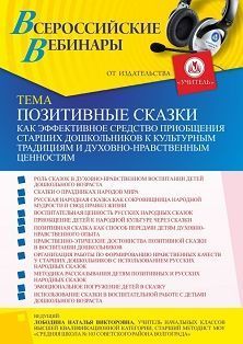 Вебинар «Позитивные сказки как эффективное средство приобщения старших дошкольников к культурным традициям и духовно-нравственным ценностям»