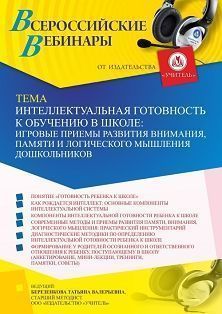 Вебинар «Интеллектуальная готовность к обучению в школе: игровые приемы развития внимания, памяти и логического мышления дошкольников»