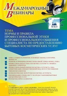 Международный вебинар «Нормы и правила профессиональной этики и профессионального общения специалиста по предоставлению бытовых косметических услуг»
