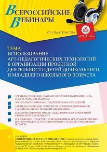 Вебинар «Использование арт-педагогических технологий в организации проектной деятельности детей дошкольного и младшего школьного возраста»