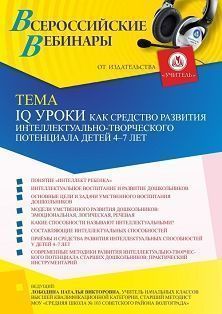 Вебинар «IQ уроки как средство развития интеллектуально-творческого потенциала детей 4 – 7 лет»
