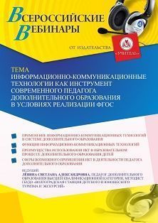 Вебинар «Информационно-коммуникационные технологии как инструмент современного педагога дополнительного образования в условиях реализации ФГОС»