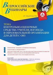 Вебинар «Контрольно-оценочные средства учителя-логопеда в образовательной организации для детей с ОВЗ»