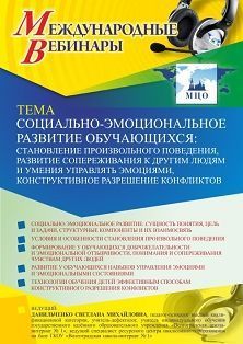 Международный вебинар «Социально-эмоциональное развитие обучающихся: становление произвольного поведения, развитие сопереживания к другим людям и умения управлять эмоциями, конструктивное разрешение конфликтов»