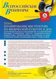 Вебинар «Планирование инструктора по физической культуре в ДОО: карточный подход к ежедневному планированию, игровые технологии, досуги, оздоровительная гимнастика, профилактика нарушения осанки и плоскостопия, взаимодействие с родителями»