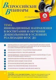 Вебинар «Инновационные направления в воспитании и обучении дошкольников в условиях реализации ФГОС ДО»